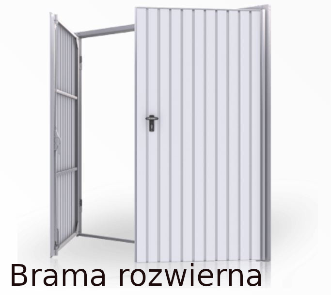 - rozwierne - są standardowym wariantem dla bramy garażowej. Składają się z dwóch skrzydeł, które otwierają się poziomo po otwarciu. Skrzydła czynne i bierne połączone są ze sobą solidnym zamkiem do bramy garażowej. Dzielimy je na: stalowe - konstrukcja z profili stalowych, poszycie skrzydeł z blachy ocynkowanej lakierowanej lub okleinowanej, może być docieplona, oraz wyposażona w okienka, dodatkowe drzwi techniczne czy kratki wentylacyjne. Drugie rozwiązanie aluminiowe - konstrukcja z profili aluminiowych wypełnienie zaś z paneli stosowanych w bramach segmentowych. Dzięki zestawieniu aluminium, uszczelek EPDM oraz paneli uzyskujemy wyższe parametry izolacyjności termicznej.